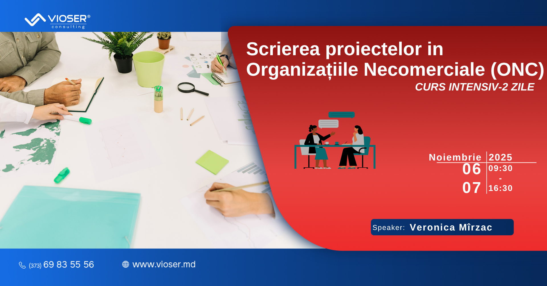 Vă invităm să participați la trainingul nostru: „Scrierea de proiecte în ONC-uri. Elaborarea cererii de finanțare pas cu pas, 2 zile intensive, 30-31 octombrie, între orele 09:00 și 16:30. Această sesiune va fi dedicată elaborării cererilor de finanțare, oferindu-vă cunoștințele și instrumentele necesare pentru a accesa cu succes fondurile externe.